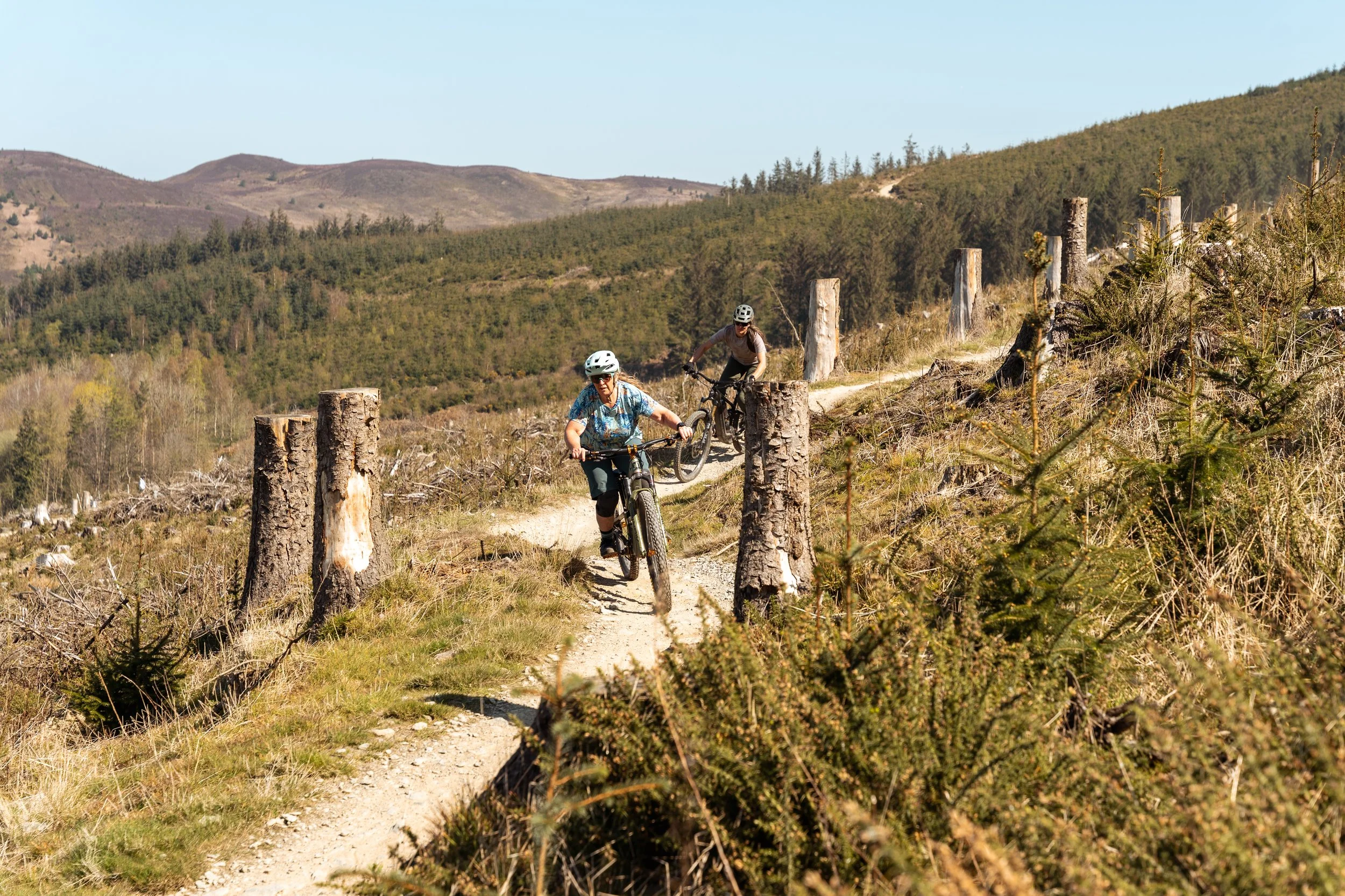 As winter faded into a super-dry spring, I began to build confidence on my beautiful new bike loving the feel of the shorter carbon cranks and, oh wow… those brakes, game changers! The mountains and forests sparkled and slowly turned from their winter brown into bluebell-scented fresh green. Our steep, winter trails disappeared once again for their off-season snooze under their thick green head high bracken blanket.